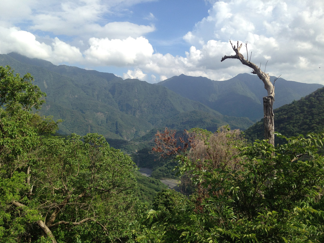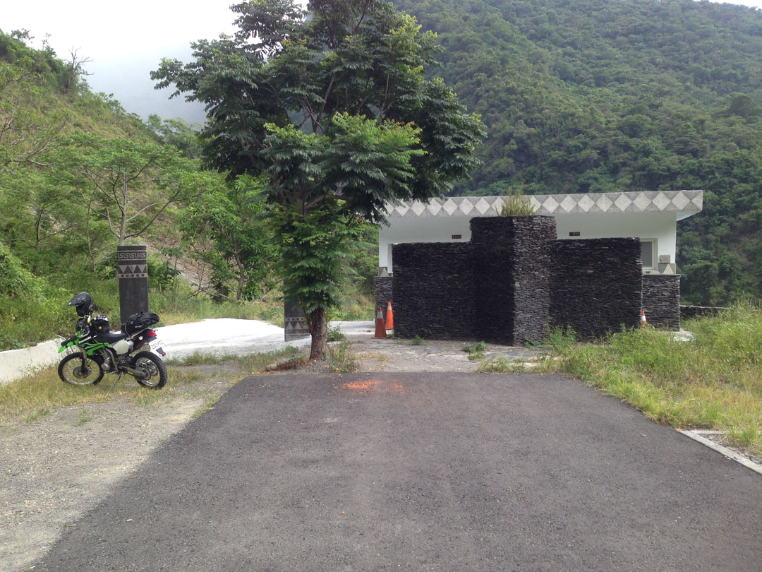 There’s a trail that takes you to the other side of the mountain. Starting here: 22.9375935,120.6739406. There’s a sign that seems to say don’t go in there, but I found a lot of hiking ribbon markers in that area. So people must be hiking it. Google maps shows the road will take you all the way to the to the main road (27), but the road has been destroyed. Don’t expect to make it down that way by motorcycle.
