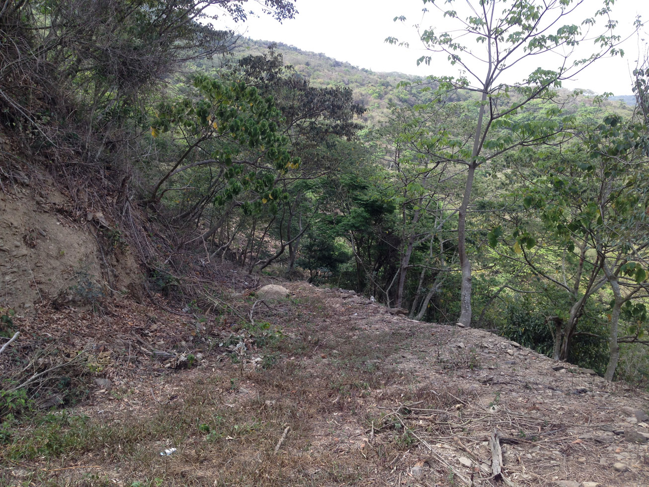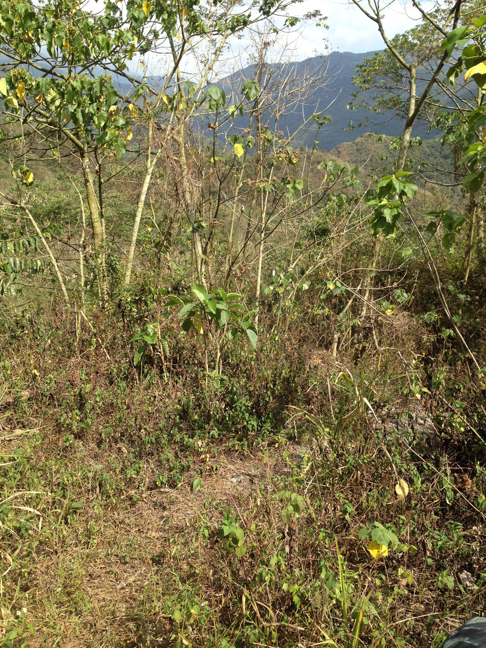 There is a mostly abandoned road starting here: 22.814569, 120.660566 It will take you about halfway down before the road disappears. You can take this side trail approximately here: 22.811216, 120.651184 past a farm that links up with the road later below. Be careful, there’s one particularly tight and dangerous switchback.