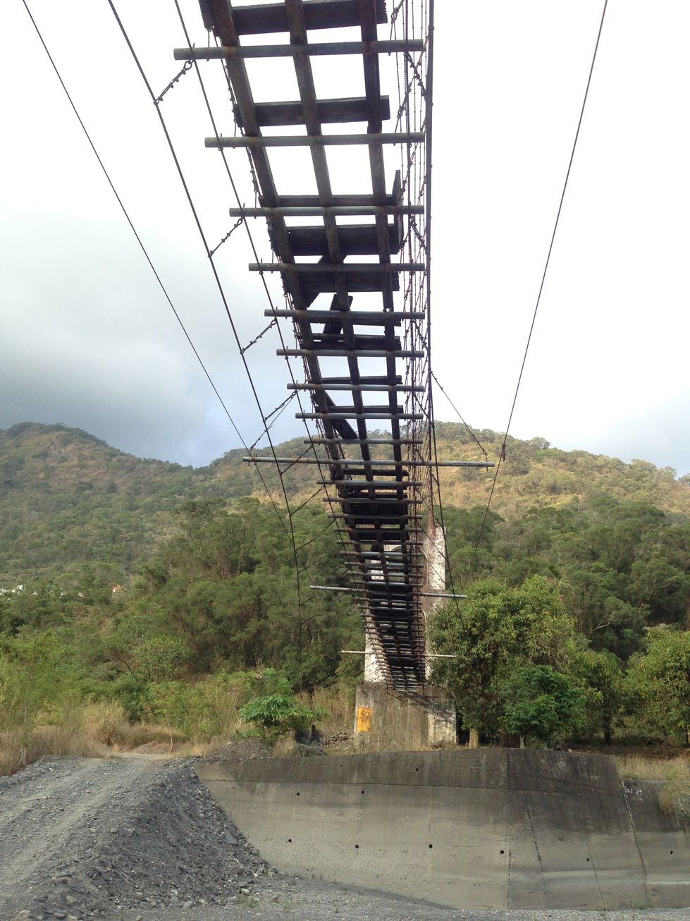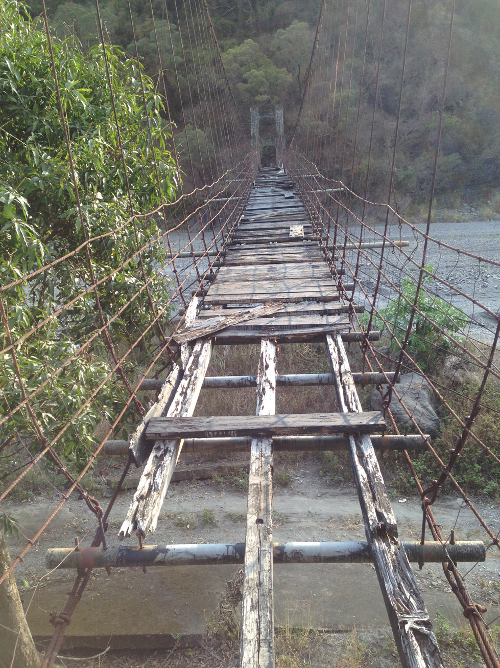 • There’s an interesting half-destroyed old suspension bridge at the end of the ride: 22.764887, 120.647895