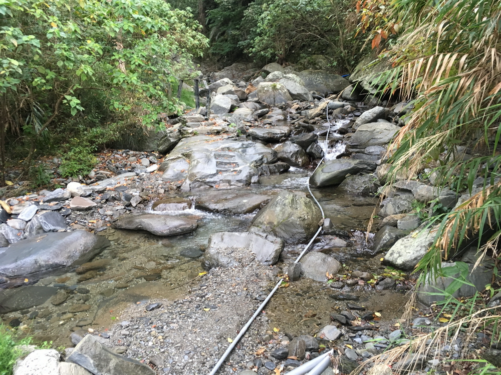 That PVC pipe was originally strung up overhead. A typhoon must have knocked it down. Oh well…